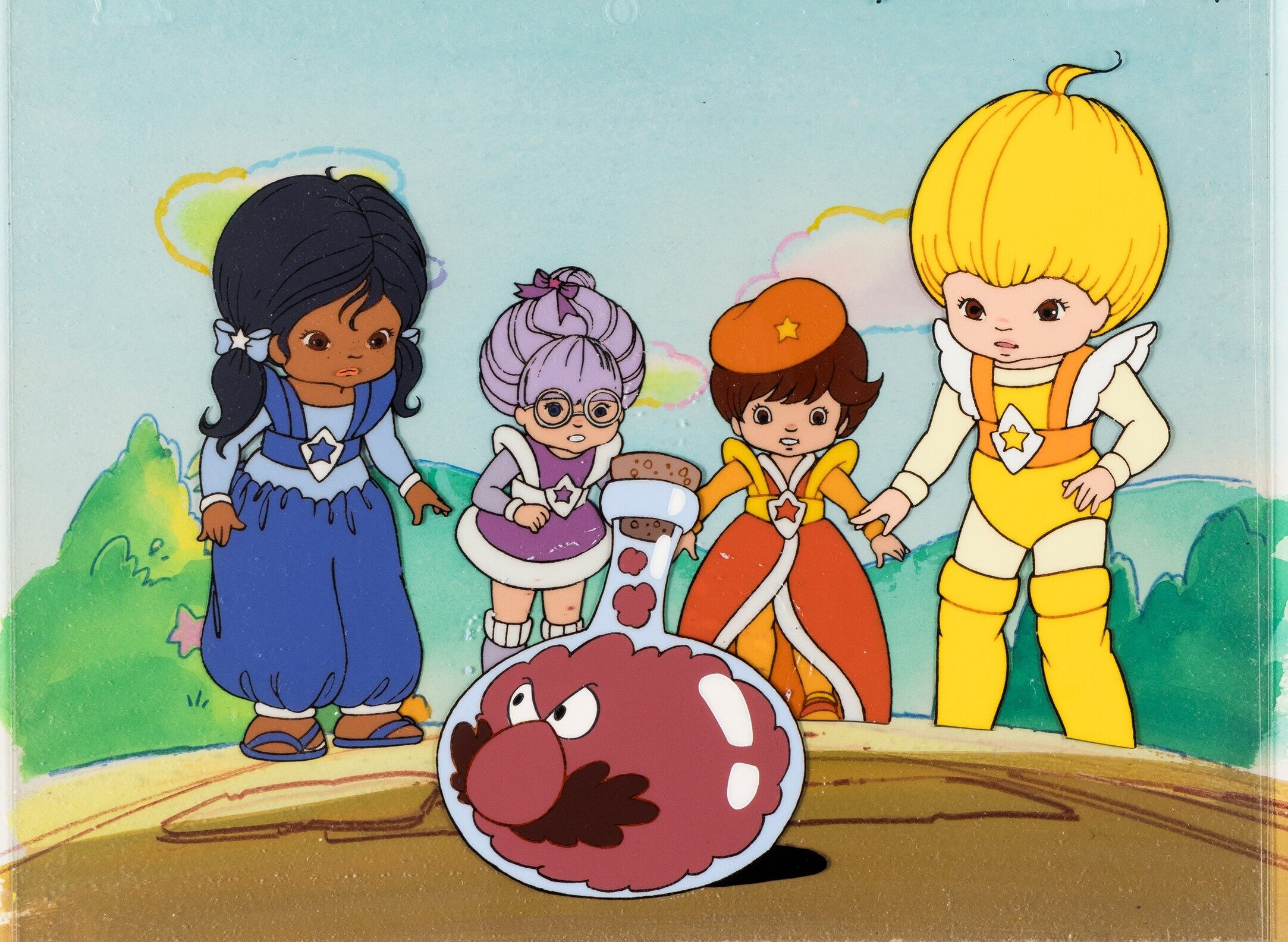 Color Kids and Monstromurk Character: Indigo, Shy Violet, Lala Orange, Canary Yellow, and MonstromurkSeries: Rainbow BriteEpisode: “The Mighty Monstromurk Menace, Part I”Original Air Date: April 22, 1985